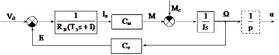 Пример 1. Дана структурная схема ЭД п.т.н.в. (ее можно получить из системы 4х уравнений, приводимых ранее в теме "ПФ")