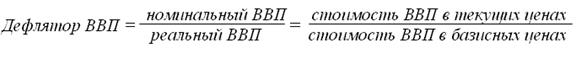 Дефлятор ВВП – индекс цен, в котором рыночная корзина представлена конечной продукцией (по структуре ВВП). Дефлятор ВВП отражает не только изменение цен (как ИПЦ), но и изменение структуры рыночной корзины и поэтому рассчитывается на основе формулы Пааше.