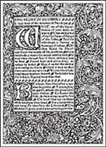 Моррис противопоставил свою работу стихийному беспорядку модной печати с тем, чтобы достичь порядка и связи всех частей книги в единое целое. Именно с Морриса и началась профессия дизайнера: человека, устраняющего случайность формы. Плотно набранный шрифт старинного образца (заново сконструированный), хорошо скомпонованный, связанный с орнаментом схожими свойствами штриха. В наборе эффект достигается минимумом средств: использован всего один кегль.