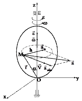 Нүкте жылдамдығының векторы шеңберге жанама бойымен (5-сурет) бұрыштық жылдамдық бағытына қарай бағытталады. М нүктесі жылдамдығының векторын бұрыштық жылдамдықтың векторы мен осы нүктенің радиус-векторының векторлық көбейтіндісі арқылы да жазуға болады (5 а -сурет):