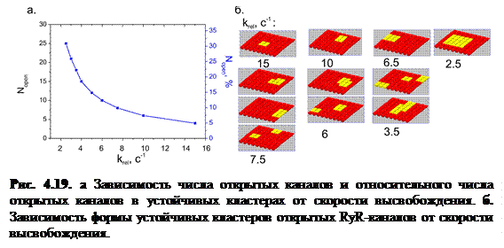 Параметр На основе численных реализаций построен график зависимости числа открытых каналов в устойчивом кластере от скорости высвобождения через одиночный канал (рис. 4.19).