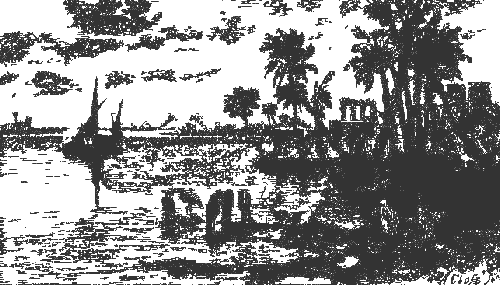 «Египет есть не что иное, как плодородная, переброшенная через пустыню полоса земли, оазис, простирающийся по берегам реки и непрерывно снабжаемый из нее необходимою для своей растительности влагою. Надо видеть Египет во время самого низкого уровня воды, за месяц до летнего поворота солнца, чтобы понять, что сталось бы с этою страною, если бы по какому‑либо случаю она лишилась своей оплодотворяющей реки. Нил в эту пору до того отступает в глубь своего русла, что имеет лишь половину своей обыкновенной ширины, и его мутные, глинистые, медленно текущие воды как будто вовсе не движутся. Оба берега реки состоят из песчаных мелей или обрывистых черноватых куч ила, постоянно прожигаемых солнцем. За ними нет ничего, кроме песков и бесплодной пустыни, потому что в особенности господствующий в продолжение двух недель и наносящий массу песку южный ветер — хамсин дует в это время почти беспрерывно. Там и сям в пыльном, ослепляющем глаза раскаленном воздухе, виднеются стволы и ветви деревьев; но листья их до того покрыты пылью, что издали их невозможно отличить от окружающих песков пустыни. Только с помощью тщательного орошения удается сохранить нечто вроде зелени в садах египетских пашей. Но вот поднимается северный ветер, первый признак приближения конца этого страшного времени года, и начинает дуть по целым дням с необыкновенною силой, нередко даже с бешеной яростью. Быстро освобождает он от пыли листву кустарников, тянущихся по всему нижнему Египту, и возвращает ей прежний зеленый цвет. Ветер этот, дующий по всей египетской стране в течение четырех месяцев, сильно смягчает зной солнца, в эту пору выше всего стоящего на небе. Вскоре с рекой происходит перемена. Находящийся в Каире водоизмеритель Нила показывает, что уровень воды поднялся на один или два дюйма и что вода начинает терять чистоту и свежесть, делавшие ее еще накануне приятной для питья. Она принимает мутно‑зеленый цвет стоячей воды в заводях, и в ней появляются вредные для здоровья вещества. Утверждают, что зеленая вода в Ниле есть явление природы, происходящее от больших масс стоячей воды, остающихся после ежегодных наводнений в южной Нубии на обширных песчаных равнинах Дарфура. Вода эта по шести и более месяцев стоит под тропическим солнцем и загнивает; потом она уносится наводнением и возвращается в русло реки. Затем вода в реке начинает прибывать очень быстро. Но проходит еще от десяти до двенадцати дней, прежде чем наступает время последнего и самого необычайного из представляемых Нилом явлений. Я постараюсь описать здесь произведенное им на меня первое впечатление. Это было под конец длинной и, как мне по крайней мере показалось, томительной ночи. Наша барка была застигнута затишьем на ширине города Бени‑Гассана, в верхнем Египте. Тщетно стараясь заснуть, я вдруг увидел верхний край солнечного диска, поднимавшегося над цепью аравийских гор. Я был изумлен, заметив, что как только солнечные лучи падали на воду, она тотчас принимала темно‑красный цвет. Эта окраска становилась тем гуще, чем ярче делался свет и, прежде чем солнце совершенно вышло из‑за холмов, Нил принял вид кровавой реки. Я подумал, что все это, было простой обман зрения, наскоро оделся, нагнулся через борт, но то, что мне представилось, только подтвердило справедливость моего первого наблюдения. Вся 