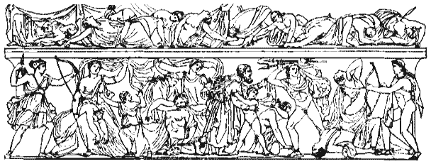 Аполлон и Артемида поражают детей Ниобеи (с древнего саркофага)