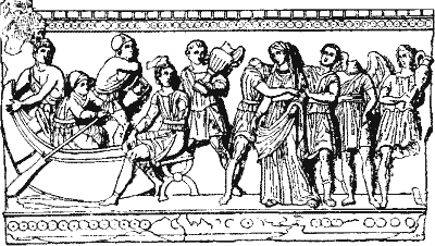 Еще более замечательной, чем поход аргонавтов, и еще более прославленной в поэзии является Троянская война. В ней, как в общенародном предприятии, приняли участие не только отдельные герои, но и все греческие государства. Этот поход был вызван различными взаимными оскорблениями, наносимыми с той и другой стороны. Еще до возникновения великой персидской монархии, начавшей впоследствии непримиримую борьбу против Греции, на малоазийском берегу существовало троянское государство, старавшееся не столько распространить свое господство на Европу, сколько войти с нею в сношения. Уже во время похода аргонавтов Геракл и другие герои успешно сражались с тогдашним царем Трои — Лаомедоном. Причиной новой войны стал дерзкий поступок сына троянского царя Приама Александра, обычно называемого Парисом. Парис приехал в Пелопоннес, остановился у спартанского царя Менелая и, согласно тогдашнему обычаю, был прнят им с необыкновенным радушием. Но Парис очень дурно отплатил за такое гостеприимство. Своей красотой он пленил супругу гостеприимного хозяина, знаменитую Елену, и в свою очередь сам пленился ею. В отсутствие Менелая Парис, захватив большую часть его сокровищ и Елену, уехал в Трою. Вся Греция не столько была возбуждена таким поступком, сколько соединенным с ним оскорблением. Поэтому Менелаю удалось привлечь на свою сторону много влиятельных мужей, согласившихся объехать всю Грецию, чтобы пригласить всех царей и царских сыновей для участия в общем походе на Азию. Самыми известными из них были: брат Менелая, микенский царь Агамемнон, Одиссей — царь острова Итаки, лежавшего между областью Акарнанией и островом Кефалонией, и Диомед Аргосский. Одиссей прославился своим хитроумием и красноречием, а Диомед — своей неустрашимостью и силой. Это предприятие сулило такую богатую добычу и такую выгоду от торговли с Понтом Эвксинским, уже открытым и посещенным аргонавтами, что собрало невиданно большое войско, для перевозки которого требовалось тысячу двести кораблей. Жители отдаленнейших областей при этом впервые познакомились друг с другом и научились сознавать себя членами одной великой нации. Агамемнон был выбран верховным вождем всех племен. Но этим правом он не мог пользоваться по своему усмотрению и был весьма ограничен в отношении власти над воинами других предводителей. Перед началом каждого предприятия предводители собирались на общее совещание, сидя в большом кругу на камнях. Всякий желающий говорить приказывал присутствовавшему здесь вестнику подать себе скипетр, который он возвращал после произнесения своей речи. Особенным весом на этих собраниях пользовались мнения Одиссея и престарелого Нестора из Пилоса. В последующих битвах больше всех отличались: аргосский царь Диомед, царь острова Крит Идоменей, сыновья Теламона Саламинского Аякс и Тевкр, но больше всех предводитель мирмидонян Ахиллес из Фтии в Фессалии, соединявший в себе силу, отвагу и мужество льва.