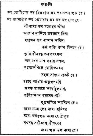 "Ты – царь Йогов и Брахманов. Ты источник Знания и Любви. Ты открыл праведный путь действия, поклонения и причин и даешь нам советы в божественной игре. Ты – друг бедных, Спаситель сирот и заблудших. Ты открыл нам простую, естественную и тайную технику, которая ведет по пути Йоги к Единству с высшим Я. Ты – Господин Добра и Чистоты в мире. Ты принес золотое послание древнейших мудрецов. Я поклоняюсь тебе, о Бог Мудрецов и божественный Учитель мира. Практика Крийя – это лодка, в которой можно пересечь океан мирских привязанностей. Я поклоняюсь тебе, Гуру Брахма (Бог Богов)". Приведенная выше поэма была написана на бенгали Свами Сатьянандой и прочитана им во время празднования столетия Лахири Махасайя в 1928 году в Кришна Нагаре. Ананда Мохан Лахири был внуком Лахири Махасайя. Он получил степень бакалавра искусств и учился вместе со Свами Сатьянандой (учеником Свами Шри Юктешвара) в городском колледже в Калькутте. Они стали близкими друзьями и вместе преподавали в Ранчи Брахмачарья Видьялайя (школа). В 1928 году на праздновании столетия Лахири Махасайя они организовали большую конференцию и празднование в Кришна Нагаре – месте, где родился Лахири Махасайя. Сатьянанада был божественным Йогом, высоко образованным человеком, поэтом, филантропом и музыкантом. На конференции он исполнил сочиненную им композицию, в которой выразил всю свою преданность. Искренность Сатьянанды глубоко тронула Ананду Мохана.