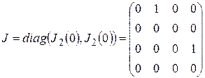 Порядок матрицы равен 4, всего 2 жордановых клетки и нет клеток 1-го порядка. Поэтому жорданова нормальная форма матрицы содержит только две жордановых клетки 2-го порядка (4=2+2):