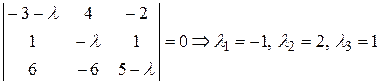 Решение. Составим характеристическое уравнение и найдем его корни, т.е. собственные значения: