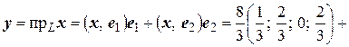 то Лемма 2.2 (критерий) Пусть Теорема 2.5 Евклидово пространство Е есть прямая сумма произвольного подпространства Следствие 1 Замечание В равенстве Пример 10 Определить проекцию вектора Решение. І способ. 1) Построить ортонормированный базис данного подпространства. Координаты векторов Сначала по