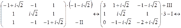 Так как у нас действительное линейное пространство, то возьмем за два других собственных вектора действительную и мнимую части полученного вектора, т.е. Базис из собственных векторов является ортогональным, получим из него ортонормированный базис: