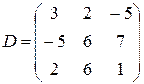 Контрольные работы выполняют по варианту, номер которого выбирается по последней цифре зачетной книжки студента(ки), цифра «0» соответствует варианту 10, и сдают для проверки преподавателю-рецензенту. В целом самостоятельная работа студента при изучении курса представляет собой следующее: -проработка материалов лекций и практических занятий; -чтение рекомендованной учебно-методической литературы; -выполнение контрольной работы в виде реферата; -подготовка к тестам и экзамену. Основная цель контрольной работы - выявление компетентности студента в сфере тем и вопросов данной дисциплины. Задание 1. Найти А+В, D+E, A×B, B×A, D×E, A×CT, detA, detD, D-1, E-1