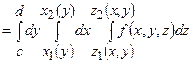 Потрійний інтеграл в декартових прямокутних координатах зводиться до обчислення трикратного інтеграла.