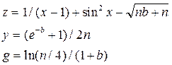Свойства ячеек также можно менять программно, например, если нужно вывести значения на рабочем листе «Лист1», используя размер 14 и шрифт Times New Roman, то надо записать в процедуре перед выводом данных: Worksheets("Лист1").Range("a2").Font.Name = "Times New Roman" Worksheets("Лист1").Range("a2").Font.Size = 14 Отладка программы. Если при вводе оператора была допущена синтаксическая ошибка, то редактор VBA помечает строку красным цветом. При возникновении ошибки во время запуска программы (например, деление на 0) происходит прерывание выполнения программы и вывод сообщения о типе ошибки. При этом в окне сообщения можно выбрать режим остановки программы End или перехода в окно отладки программы Debug. Строка с ошибкой или процедура, где возникла ошибка, будет помечена желтым цветом. Для исправления ошибки нужно прервать программу, нажав кнопку Reset Содержание заданий 1. Создать командную кнопку с заголовком «Пример расчета». Набрать для этой командной кнопки приведенный выше текст линейной программы и выполнить программу щелчком мыши по кнопке. 2. Создать командную кнопку c заголовком «Расчет по формулам» и записать для нее программу по условию, приведенному в табл. 4.2. Выполнить программу и проанализировать результаты.