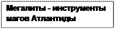 Кроме того, все мегалитические конструкции на поверхности планеты образуют единую сеть-систему, которая в целом, как и каждая ее отдельная часть, имеет точную астрономическую и геофизическую ориентацию. Первобытные люди? Каменный век? Если это был каменный век, то древние конструкторы уже обладали таким знанием, что не нуждались ни в железе, ни в электричестве, поскольку астрономия и физика были для них простейшей азбукой. Создать такое сейчас наука не способна ни теоретически, ни технически, тем более - без станков, электричества, транспорта и компьютеров. Просто берутся камни, и из них собирается генератор-излучатель, работающий на приливных силах гравитации и солнечных радиоволн... < ã Мальцев С. А., 2003 > Физики смогли определить, что это такое. Кто может разобраться в назначении таких устройств? Как они использовались? Ответ на это могут знать современные маги в белых халатах, ученые из секретных лабораторий по биоэлектронике, нейроэнергетике и психотронике - молодых наук, интересующихся способами воздействия физических энергий на живое вещество и сознание человека. Из тех экспериментов, которые входят в область их исследований, некоторые становятся известны и могут служить для нас ключом, открывающим тайну назначения мегалитов. В 1975 году во время одного из таких экспериментов, проводившихся по принципу "А что получится, если...", совместно американцами, австралийцами и французами над Австралией была запущена метеорологическая ракета-зонд. В верхних слоях атмосферы она выпустила узкий пучок электронов вдоль силовых линий магнитного поля Земли. Результат оказался неожиданным: сильная электромагнитная буря прошла по всей планете, нарушив радиосвязь, а вслед за ней по странам прокатилась волна массовых психозов[81]. Всего один метеорологический зонд, всего один пучок электронов... Мегалиты тоже размещены в строгом соответствии с направлением на географические полюса планеты, а, значит, и с направлением магнитного поля. И также они способны испускать направленные потоки энергии. Остается только найти того, кто мог бы управлять этими магическими психофизическими устройствами, объединенными в глобальную планетарную сеть, подобно нашей современной информационной. < ã Мальцев С. А., 2003 > На первый взгляд кажется странным, что мы все-таки не находим в земной толще каких-то останков технических устройств атлантов, пусть даже самого простого болтика от их "Вимана". Но если иметь в виду изменившуюся во время геологических сдвигов географию суши - о чем говорят все те затопленные дороги, стены и пирамиды не дне Атлантики - то становится понятно, почему нам сейчас трудно отыскать такой болтик или что-либо еще. Представим себе такое событие в наше время - цивилизацию, спасающуюся от потопа. Что мы увидим, следуя логике? Горожане выскакивают из своих небоскребов и трамваев, и в панике несутся прочь от городов и обустроенных долин, стремясь быстрее вырваться из уютных когда-то, а теперь пугающих объятий цивилизаций. Путь их лежит в горы - как можно дальше и как можно выше, туда, где только ветхие домики пастухов и стада баранов. Люди, сами теперь похожие на жалкие стада овец, подгоняемые теми, у кого побольше инициативы и силы духа, несут с собой только то, без чего нельзя обойтись - одежду и пищу. Остальное - то, что "может пригодиться" - по мере у