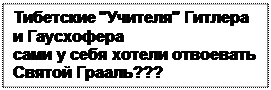 И Гитлер, и Гурджиев, и Гаусхофер противопоставляли себя и свою миссию природе и высшему Началу. Тогда что за тибетские наставники подводили их к этой мысли, к этой миссии, и кем были эти тибетские наставники? Высшими Посвященными? Но ни у одного Алхимика, ни у одного Посвященного никогда не возникла бы подобная мысль о противопоставлении себя всему миру и высшему Началу. И Парацельс, и апостол Павел, и Христос говорили о пользе дерзания, смелого творчества. У Парацельса "Через тернии к звездам", у Павла "Царство Божие силой берется", у Христа "Ищите и дано будет вам, стучите и откроется", но никто никогда из них не заявил бы о таком противопоставлении. Любой настоящий философ, ученый, маг видел себя сотрудником природы, сотрудником Начал, и ни для кого из них тяжелый труд преодоления препятствий не был поводом проклинать Природу, Творение и Творца. Это было бы элементарным невежеством - частице Целого, каким является человек, противопоставлять себя всему Целому. Такая нелепость может появиться только в уме самовлюбленного и тщеславного человека. То есть там, на Востоке, те, кто "посвящали" таких европейских магов, как Гурджиев и Гаусхофер, в эту странную мешанину черного и белого, кто, играя на их душевных слабостях, возлагали на них миссию противостояния Высшему, отнюдь не были Высшими Посвященными. Их нужно искать на противоположной духовной стороне, в стане экзотерического жречества и черной иерархии. Таким образом, на том же Востоке и, в частности, на Тибете, замечается наличие мощной традиции черного посвящения (которую так упорно отрицает Гудрик-Кларк).