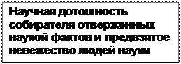 Нет, Чарльз Форт не был пациентом психиатрической больницы, напротив, он был завсегдатаем библиотек. Его интерес распространялся на все газеты, журналы, ежегодники и хроники всех стран мира и всех веков. Ведь не был же весь мир сумасшедшим? Рядом с коробками, наполненными заметками из газет, в квартире стояли стопки научных журналов за десятки лет. А заметок в коробках было двадцать пять тысяч! Для Форта они были маленькими существами - странными, иногда уродливыми, иногда с причудами, - которые отвержены миром за их необычность, странность. Они состоялись как события когда-то, имели место в пространстве и времени, но остались только на пожелтевшей бумаге газет и в памяти очевидца, который с ними встретился нос к носу. Для всего остального человечества они не больше, чем курьез, развлечение, потому что новая религия, которую назвали наукой, запретила думать о них всерьез, сказав: "Этого не может быть, раз и навсегда!" Она запретила их, но, тем не менее, они каждый день нарушали этот запрет. И Чарльз Форт увлеченно и добросовестно собирал эти факты. Но однажды его осенило. Оказывается, все, что он делал, - впустую, что надо было делать совсем не так. Он решительно сжигает все, что накопил за много лет, все свои заметки об этих странных отверженных фактах. Он решает уничтожить старый храм, чтобы на его пепелище создать новый, со всей тщательностью и дотошностью, которой так гордится наука. Ему теперь надо выслушать Науку, что же она говорит по всем направлениям знания на данный момент, на чем зиждется ее уверенность во всезнании, которая позволяет ей с такой легкостью отрицать добрую половину мира и большую часть происходящих событий. И еще, решает он, нужно точно также собрать все эти факты, но только тщательно проверив достоверность каждого. Первый период работы, который прошел до того всесожжения заметок, привел его к открытию, что одна из сил, движущих цивилизацией - это уверенность цивилизованных людей в том, что они знают о Вселенной, в которой живут, абсолютно все. То есть, знание, которое накоплено и освоено цивилизованным человеком на данный момент, и есть та самая Вселенная. И кроме нее, этой Вселенной, ограниченной ограниченным знанием, нет ничего больше. Такая точка зрения господствует в обществе в любой момент его прогресса несмотря на то, что знания прибывают с каждым днем, и с каждым днем ее опровергают. Таков психологический феномен коллективного сознания. Форт писал в своих заметках: "В топографии разума можно было бы определить знание как невежество в оболочке из смеха" [283]. Ограниченное знание, относительное знание, всегда являющееся примитивным по сравнению с более совершенным знанием, если оно самоуверенно, можно назвать невежеством. Оно упорствует в незнании того, что отрицает весь мир, находящийся за его пределами. А защищается тем, что предает все им отрицаемое насмешке. Так получается невежество в оболочке из смеха. Тот, кто решается усомниться в абсолютной осведомленности этого невежества, подвергается насмешке и унижению со стороны общества. Конституция, рассуждал Форт, должна гарантировать гражданам в дополнение ко всем остальным свободам еще и свободу сомневаться в науке. Свободу сомневаться во всех ее умозаключениях и гипотезах. Свободу сомневаться во всем, кроме фактов. Теперь Чарльз Форт должен был заявить об 