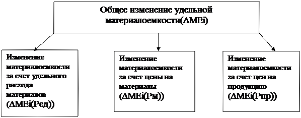 MEi - удельная (частная) материалоемкость, M3i - материальные затраты на производство i-гo изделия, Рi - цена i-гo изделия. Для факторного анализа общей материалоемкости используется формула: