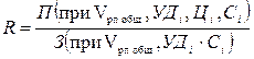 где Vрп общ – общий объем реализованной продукции; УДi – удельный вес i-того вида продукции в общем объеме; Цi – цена реализации i-того вида продукции; С i – себестоимость i-того вида продукции.