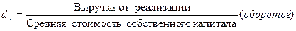 Коэффициент отдачи собственного капитала. Показывает скорость оборота собственного капитала. Сколько выручки тыс. руб. приходится на одну тыс. руб. вложенного собственного капитала предприятия: