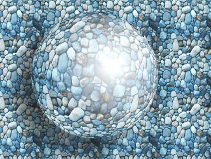 5. Выберите инструмент Interactive Drop Shadow (Интерактивная тень), щелкнув соответствующую ему кнопку на панели интерактивных инструментов. Щелкните указателем инструмента в середине белого круга и перетащите его вниз и влево, создавая иллюзию, что круг плавает над камешками и отбрасывает тень. 6. Не отменяя выбора группы тени, выберите команду Arrange->Break Drop Shadow Group Apart (Монтаж->Отделить), «замораживающую» тень. Теперь белым кругом снова можно свободно манипулировать. 7. Выберите исходный белый круг, а затем командой Edit->Copy Properties from (Правка->Копировать свойство с) откройте диалоговое окно Copy Properties (Копирование свойств). Установите флажок Fill (Заливка), щелкните кнопку Ок, а затем появившейся горизонтальной стрелкой щелкните фоновое изображение камешков. Дублируйте круг с точечной заливкой и отодвиньте копию в сторону – она нам еще понадобится. 8. Выберите круг с точечной заливкой, расположенный над тенью, и воспользуйтесь командой Bitmaps->Convert to Bitmaps (Точечное изображение->Преобразовать в точечное изображение). Выберите в списке Color (Цвет) альтернативу СМУК и установите флажки режимов Anti-Aliasing(Сглаживание), Transparent Background (Прозрачный фон), Use Color Profile(Использовать цветовой профиль). Для выполнения растрирования щелкните кнопку ОК. 9. Теперь, когда круг с заливкой точечным узором превратился в точечное изображение, его можно исказить, придавая ощущение округлости. Откройте диалоговое окно Sphere (Сфера) командой Bitmaps->3D Effects->Sphere (Точечные изображения->3D эффекты ->Сфера). Ползунок Percentage (Процент) дает возможность управлять степенью искажения точечного изображения. Принятое по умолчанию значение управляющего параметра, равное 25, нам вполне подходит, поэтому сразу преобразуйте точечное изображение в сферу, щелкнув кнопку ОК (рис. 2).