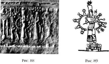 Кем же были эти «древние люди», которым Евдокс приписывал обозначение созвездий? Основываясь на содержащихся в поэме сведениях, современные астрономы пришли к выводу, что описание неба в ней соответствует картине, которую можно было наблюдать в Месопотамии приблизительно в 2200 году до нашей эры. Гиппарх и Евдокс жили в Малой Азии, и поэтому вполне вероятно, что в своих работах они пользовались хеттскими источниками. Возможно, они даже посещали столицу хеттов и видели вырезанный в скалах барельеф с процессией богов, среди которых были существа с телом человека и головой быка, несущие шар, – этот образ вполне мог вдохновить Евдокса на создание Атласа, поддерживающего небесную сферу (рис. 92). Может быть, греческие астрономы из Малой Азии были более информированными, чем их преемники, потому что они имели в своем распоряжении месопотамские источники? И действительно, Гиппарх в своих работах подтверждает, что его исследования основываются на знаниях, собиравшихся и проверявшихся на протяжении нескольких тысячелетий. Своими учителями он называет «вавилонских астрономов из Эреха, Борсиппы и Вавилона». Гемин Родосский называет «халдеев» (жителей Древнего Вавилона) первыми, кто вычислил точную траекторию движения Луны. Историк Диодор Сицилийский в первом веке до нашей эры указывал на точность месопотамской астрономии; он шсал, что «халдеи дали названия планетам… в центре их jHCTeMbi находилось Солнце, величайший источник света, а планеты были его «отпрысками», отражавшими блеск и положение светила». Таким образом, общепризнанным источником греческой астрономии считалась Халдея, и древние жители этой страны, вне всякого сомнения, обладали более обширными и точными знаниями, чем народы, пришедшие им на смену. В древности для многих поколений людей слово «халдей» было синонимом таких понятий, как «звездочет» или астроном. Господь, ведя речь о будущих поколениях, сказал Аврааму, который родился в Уре Халдейском: «Посмотри на небо и сосчитай звезды». В Ветхом Завете содержится масса астрономической информации. Иосиф сравнивает себя и своих братьев с двенадцатью небесными телами, а патриарх Иаков благословляет двенадцать своих наследников, сравнивая их с двенадцатью зодиакальными созвездиями. В Псалмах и Книге Иова многократно упоминаются небесные явления, зодиакальные созвездия и другие группы звезд (например, Плеяды), говорится о знании Зодиака и научно обоснованном делении небесной сферы, а также приводится другая информация из области астрономии, известная на Ближнем Востоке задолго до Древней Греции. Диапазон знаний, накопленных месопотамской астрономией, был чрезвычайно широк Даже то, что по прошествии нескольких тысяч лет удалось найти археологам, складывается в огромную массу текстов, надписей, оттисков печатей, барельефов, рисунков, списков небесных тел, предзнаменований, календарей, таблиц восхода и захода Солнца и планет, предсказаний времени затмения. Многие более поздние тексты относились скорее к астрологии, чем к астрономии.