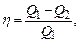 де Q1 – кількість теплоти, отриманої від нагрівача; Q2 – кількість теплоти, переданої робочим тілом холодильнику теплової машини. Для циклу Карно термічний ККД визначається за формулою: