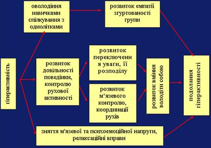 2) практичний психолог безпосередньо займається з дитиною індивідуально, а також в групі гіперактивних дітей по спеціально розробленій програмі.