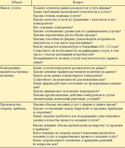 Перечень видов информации, необходимой фирме для принятия решений по ценам