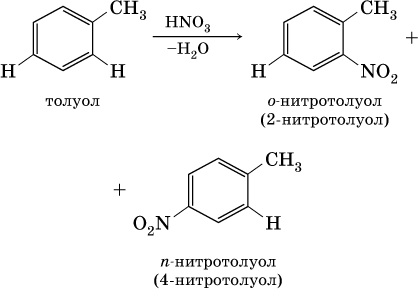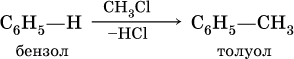 В обеих формулах атомы С кольца и не участвующие в реакции атомы Н опускаются (для краткости). Некоторые простейшие гомологи бензола: