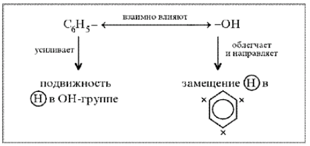 Фенильная группа C6H5 – и гидроксил –ОН взаимно влияют друг на друга