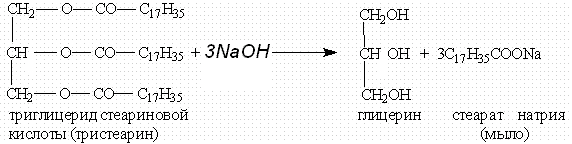 или щелочей (необратимо). При щелочном гидролизе образуются соли высших жирных кислот, называемые мылами. Мыла получаются при гидролизе жиров в присутствии щелочей: