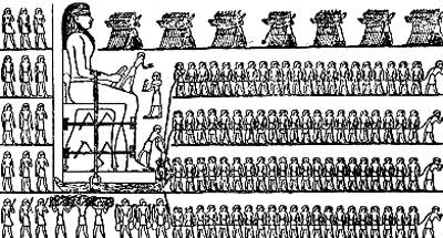 В его владении находились Моккатамские горы с каменоломнями Турры, доставлявшими, материал для пирамид, гробниц и статуй. Отсюда Мемфисский храм сделался средоточием художников; верховный жрец носил титул «великий художеством», а Пта сделался богом искусства. - На ряду с этими двумя высшими сословиями в текстах упоминаются «серу» — именитые люди, может быть, свободные помещики: они противополагаются несвободным крестьянам. Так, один номарх более позднего времени хвалится, что он переселил к себе соседей и сделал их из крепостных «серами». Пред коллегией или депутатами серов решались и судебные имущественные процессы (суд пэров?). Далее, в Египте существовали свободное мещанство, занимавшееся ремеслом и торговлей, и крепостное крестьянство. Положение этих двух классов населения, податного и подлежавшего барщине, рисуется в литературе мрачными красками.