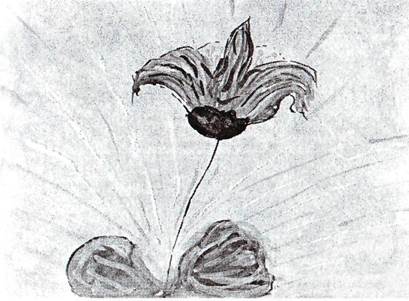 Рис. 23. Райский цветок. Этот рисунок символизирует безмятежное внутриутробное состояние, полную реализацию всех потребностей и устремлений, единство с миром Вторая базовая перинатальная матрица (БПМ II) формируется в первом периоде родов во время родовых схваток. Она содержит ощущение тревоги и надвигающейся опасности, память о ситуациях, угрожающих выживанию или целостности тела человека, а также о нахождении в замкнутом пространстве (тюрьме, лабиринте), отсутствии выхода. Кроме этого, может воспроизводиться апокалиптическое видение мира, бессмысленность и абсурдность человеческого существования, зловещие цвета, душевные и телесные мучения, тревога, чувство вины и надвигающейся опасности. Телесные страдания бывают связаны с ощущением голода, жажды, тошноты, болей в прямой кишке, мочевом пузыре или в области половых органов (рис. 24). Третья базовая перинатальная матрица (БПМ III) содержит память о втором периоде родов и характеризуется отчаянной борьбой за выживание, сильнейшим механистическим сдавливанием и удушьем, контактом с биологическими продуктами (кровь, кал, слизь и т.п.). Индивид переживает элементы титанической битвы, садомазохистские ситуации и сильное сексуальное возбуждение. Это смесь агрессии и яростной биологической реакции на удушье, боль и тревогу. Здесь ситуация не кажется безнадежной, а сам индивид беспомощным. «Он принимает активное участие в происходящем и чувствует, что страдание имеет определенную направленность и цель» [С. Гроф, 1993] (рис. 25).