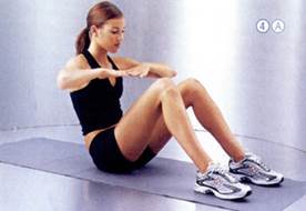 21. Поднимание корпуса и ног. Укрепляет все мышцы пресса. Лягте на спину, поднимите согнутые в коленях ноги и обхватите ладонями бедра, голени параллельны полу, пресс напряжен. Сделав вдох, оторвите голову, плечи и лопатки от пола. На выдохе выпрямите ноги. Вдохните и потянитесь ладонями к носкам. Затем выдохните и разведите руки в стороны над головой. Описывая руками круг, снова обхватите ладонями бедра и задержитесь на 2 счета, после чего согните колени и выполните необходимое число повторов.