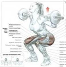 Приседание со штангой (бодибаром) на плечах.