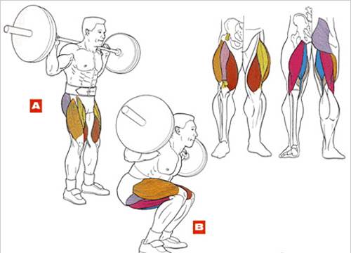 Приседания со штангой задействуют квадрицепсы, мышцы задней части бедра и ягодиц. Это базовое упражнение способствует наращиванию массы и объема всех мышц бедра. Приседания со штангой - самое эффективное упражнение для наращивания массы и силы мышц бедра в целом (с акцентом на квадрицепсы).