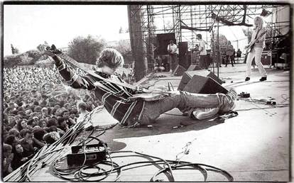 «Sonic Youth» (на переднем плане Торстон Мур), живой концерт в Китсэп-Каунти- Форграундз («Endfest»), 8 августа 1992 года. «„Sister" группы „Sonic Youth" — это прежде всего тяжелые кислотные эксперименты, от которых я была далека, плюс физика — или психология, Филип К. Дик, поклон английскому языку и футболу, никаких парней, куча сигарет и тяжелых наркотиков...» (Кортни Лав). (Чарлз Питерсон)