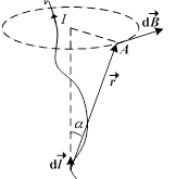 Примеры расчета индукции магнитного поля тока. На основании экспериментальных данных Био и Савара (Франция, 1820 г.) Лаплас получил формулу для расчета вектора индукции магнитного поля ,созданного