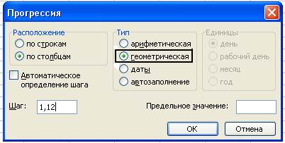 - в окне «Прогрессия» в группе - «Тип» активируйте пункт «Геометрическая» (рис.11):