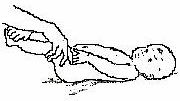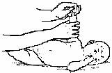 4. Повторить 5-6 раз. Растирание производят из положения ребенка на спине. Ладонью производят мелкие поглаживающие движения по наружной стороне голени и бедра. Ногу ребенка захватывают одновременно большими и указательными пальцами и спиралеобразными движениями производят массаж по направлению от стопы к тазобедренному суставу. Голень массируют одновременно по наружной и внутренней поверхности, а бедро - только по наружной поверхности. Повторить 4-6 раз для каждой ноги. Заканчивают массаж ног поглаживанием, которое производят 4-6 раз.