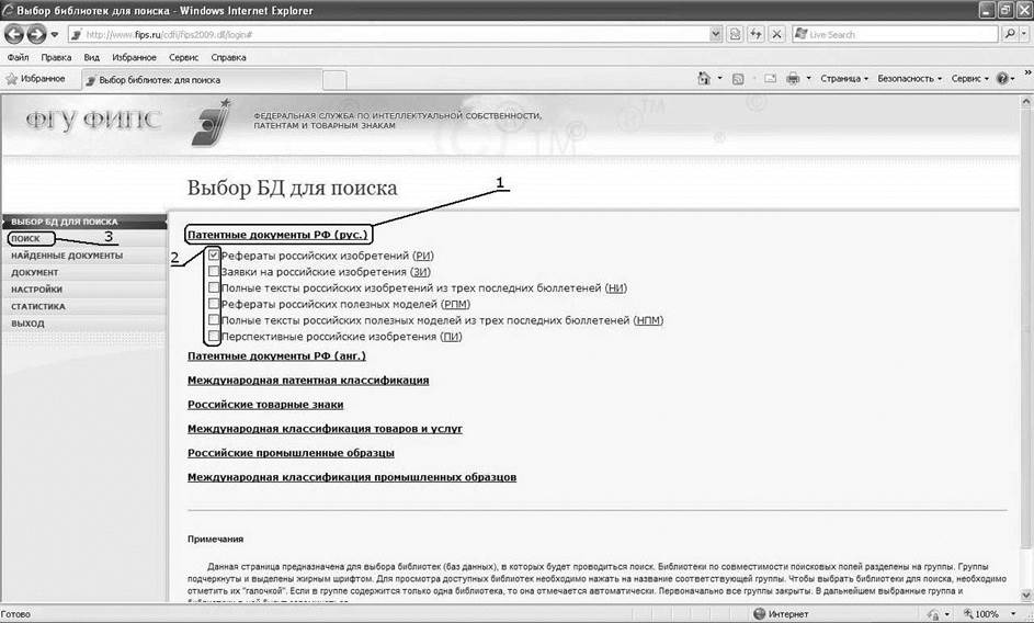 Поиск патентов и изобретений в банке данных Федерального института промышленной собственности России