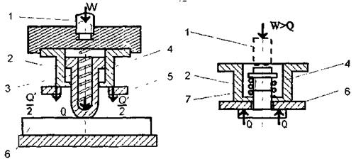 Пружинные механизмы характеризуются относительной простотой конструкции, удобством эксплуатации, позволяют автоматизировать процесс закрепления и раскрепление заготовок. Существует два вида пружинных механизмов. На рисунке 6.12, а прижим заготовки осуществляется сжатием пружины на величину На рисунке 6.12, б для раскрепления заготовки шток силового привода опускается вниз. Пружину рассчитывают на заданные значения