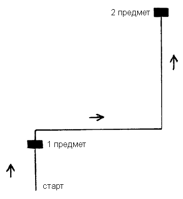 Это упражнение предполагает поиск собакой предметов по следу. Длина следа проводника должна составлять 600 м, давность проложенного следа равна 30 мин. Следовой маршрут имеет 2 угла, в определенных его местах проводник кладет 2 предмета, которые должны быть в дальнейшем обнаружены собакой. На собаку, выполняющую упражнение, надевают поводок (его длина составляет 10 м) и поисковую шлейку. Проводник, оставляющий след, должен двигаться от исходной точки прямо, в направлении, обозначенном на заранее разработанном плане следовой линии. Причем ему необходимо задержаться в исходной точке примерно на 1 мин (стоять при этом следует спокойно, не переступая с ноги на ногу, чтобы оставить четкий след, но без излишнего, «дополнительного», запаха). Далее проводник начинает прокладку следового маршрута по направлению к его завершающей точке, передвигаясь обычным равномерным шагом. Прокладывая след, проводнику нужно оставить на линии 2 предмета небольшого размера. Их цвет должен контрастировать с цветом почвы на площадке, чтобы они были хорошо заметны даже издалека. Недопустимо располагать на маршрутной следовой линии кусочки пищи, которая может привлечь внимание собаки, а также скармливать ей лакомства во время выполнения упражнения. Один из предметов проводник кладет на расстоянии около 50 м от первого угла следовой линии, а второй предмет должен находиться в конечной точке маршрута.