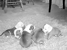 Чтобы потребность лактирующей суки в минеральных веществах и витаминах была полностью удовлетворена, следует включить в ее рацион костную муку,0,5 чайной ложки минеральной смеси 2–3 раза в день, зелень, свежие овощи и витаминные препараты. Полезно давать кормящей собаке 1 таблетку аскорбиновой кислоты с глюкозой каждый день. Для увеличения лактации ей можно давать по 1 грецкому ореху 3 раза в день и по 0,5–1 таблетке апилака, являющегося биогенным стимулятором. Также хорошо поить собаку кофейным напитком с молоком и медом. В период с 4-й по 6-ю нед после родов по мере того, как щенки начнут получать прикорм, можно начинать уменьшать объем пищи для суки, но нельзя снижать ее калорийность. Следует постепенно уменьшать количество потребляемой собакой жидкости, чтобы снизить лактацию, а для ее полного прекращения нужно 1 день не кормить суку и ограничить ее в питье. В это время собаке нужно 2–3 раза в день делать легкий массаж сосков, смазывая их камфарным маслом с витамином А, и прикладывать теплое полотенце. Полезно также для прекращения выработки молока увеличить собаке физические нагрузки. К моменту раздачи щенков их мать должна допускаться к малышам только для того, чтобы они отсасывали у нее молоко и чтобы убедиться, что с детьми все в порядке. Щенков нужно отдавать постепенно, иначе у собаки будет серьезный стресс. Лактирующую (кормящую) суку нужно кормить из расчета удвоения количества энергии, требующейся ей самой. Щенки будут отставать в развитии, если их мать не получает полноценного питания. Ее кормят 3 раза в день в зависимости от того, в каком состоянии она находится. Содержание новорожденных щенков Щенки в доме, особенно когда их много, – это постоянный источник хлопот. Первые дни после рождения они требуют к себе очень много внимания. Владельцу нужно запастись терпением, чтобы новорожденные малыши не были обделены любовью и лаской. При инфицировании родовых путей суки во время родов щенки могут погибнуть от сепсиса сразу после появления на свет. Это, как правило, щенки, родившиеся первыми, тогда как последние обычно рождаются здоровыми. В данной ситуации необходимо немедленно изолировать малышей, перевести на искусственное вскармливание или подложить их другой кормящей суке. К больной матери следует вызвать ветеринара. Несмотря на то что новорожденные щенки глухие и слепые, обоняние у них на должном уровне: они сразу ползут на запах матери и самостоятельно находят ее соски. С первых дней жизни между щенками начинается борьба за самые молочные соски – задние. Слышать малыши начинают на 3–4-й день. Первые болезни также могут настигнуть щенков в это время: инфекция проникает в их организм в момент рождения, если их мать больна. Заболевшие щенки скулят и повизгивают, начинают отставать в развитии, не прибавляют в весе, так как не в состоянии сосать молоко. Чаще всего они погибают.