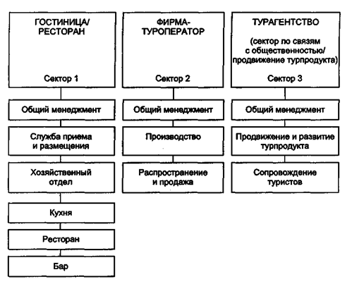 выполнения должностных обязанностей, приведенных в так называемых профессиональных стандартах почти не корреспондируются с требованиями Государственных образовательных стандартов Минобразования России, используемых для подготовки специалистов гостиничного и туристского бизнеса. Таким образом, впервые в практике обучения работников индустрии туризма появляется возможность оценить направленность и уровень российского и международного образования, сопоставить знания и умения, необходимые для занятия той или иной должности в индустрии туризма, гостиничного и ресторанного хозяйства. Структура российских предприятий туристской индустрии и перечень должностей в ней несколько отличаются от структуры перечня, положенного в основу классификации CEDEFOP. Должностные обязанности российского персонала, как правило, разрабатываются предприятием самостоятельно на основе опыта и квалификации руководителя. Современные отечественные нормативные документы лишь затрагивают некоторые аспекты кадровой деятельности турфирм, гостиниц и ресторанов. Одним из документов в этой области является Распоряжение заместителя премьера правительства Москвы от 20 марта 1998 г. № 224-РЗП, которым в Москве введена единая система аккредитации гидов-переводчиков (экскурсоводов) с выдачей аккредитационной карты, подтверждающей квалификацию гида-переводчика и дающей право осуществлять экскурсионное обслуживание туристов. Перечни служебных обязанностей директора гостиницы и директора фирмы-туроператора разнообразны и многоплановы. Так, служебные обязанности менеджера по производству туристских услуг (турпродукта) (АР-1) - директора фирмы-туроператора (21593) состоят из 50 разделов: от набора персонала и организации производственных служб, проведения специальных расчетов до контроля за ситуациями, связанными с безопасностью клиента и его имущества, рассмотрением жалоб и улучшением качества услуг. Служебные обязанности генерального менеджера отеля (RG-1) - директора (заведующего) гостиницы (21353) состоят из 49 разделов, включающие: исследование рынка, статистику, политику маркетинга и продаж, набор и обучение персонала, рекламу и продвижение продукта, дисциплину и поведение персонала и меры по их поддержке, а также анализ эффективности и производительности работы гостиницы и многое другое. Основы квалификационных требований могут найти применение в практике работы туристских и гостиничных предприятий. Опыт практической деятельности в индустрии туризма показывает, что персонал, работающий там, нацелен на решение следующих задач: 1. Обеспечение нормального (приемлемого) экономического развития фирм-туроператоров, турагентств, гостиниц и ресторанов (персонал - экономисты, менеджеры, специалисты по маркетингу и бронированию). 2. Управление отлаженной экономической структурой (административный персонал, управляющие службами, турфирмами, гостиницами и ресторанами). 3. Обеспечение работой сервисных служб в контактной с туристами зоне (производственный персонал). 4. Обеспечение и поддержание необходимого качества предоставляемых туристских и гостиничных услуг и безопасности пребывания туристов и экскурсантов (управленческий и производственный персонал). Например, структура высшего звена управления в некоторых гостиничных комплексах США (по д
