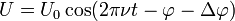 де Змінний струм виникає в електричному колі зі змінною напругою. Коливання напруги відбуваються за подібним законом, проте, в загальному випадку із зсувом фази