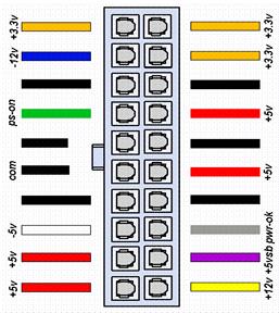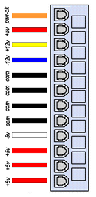 Распиновка разъема блока питания формата AT и ATX