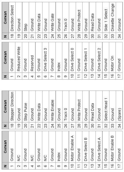 Жилы с 10 по 16 после первого разъёма перекручены - необходимо для идентификации дисковода. Нечетные контакты - корпус.