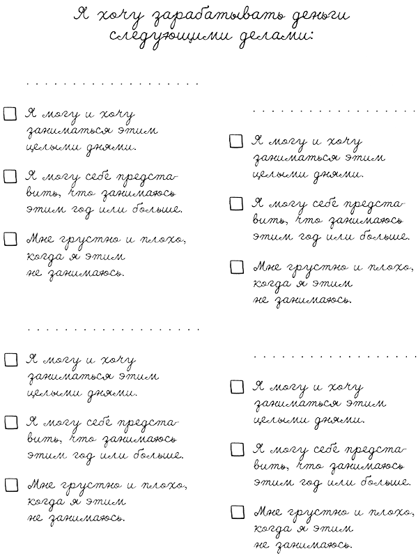 Но не у всех студентов жизнь выглядит именно так! Многие к моменту поступления в вуз уже имеют семью, детей, не могут жить в общежитиях, и подработки барменом им мало. Разное в жизни бывает, и люди выкручиваются по‑разному. Все возможно, если семья понимает, что происходит. В случае с обучением сценарий понятен. Нужно пережить годы обучения, чтобы потом поскорее найти квалифицированную работу либо начать строить собственный бизнес. Можно попытаться отложить заранее денег на обучение, можно найти всем дополнительные заработки в процессе. То же самое нужно делать, если кто‑то решает сменить профессию и серьезно заняться творчеством. Такой переход не может совершиться за одну секунду. Нужно произвести достаточное количество товара, продумать, как его продавать, найти клиентов. А во многих случаях, как мы видим, для начала нужно всему этому научиться! В любом случае нужно иметь план, что делать, пока дело мечты не приносит достаточно денег. Однако не нужно думать, что между первой попыткой и получением диплома денег не заработаешь. Можно продавать любые навыки, любой товар, пусть даже маленький и простенький. Опять же – посмотрите на студентов. В художественном вузе очень многие сразу начинают делать деньги на мелочах, которым уже научились. Я умела рисовать большие буквы плакатным пером или широкой кистью. Это очень простой навык, и много им не заработаешь. Но перед парадами, два раза в году, в Советском Союзе немало денег приносило написание лозунгов. Позже я научилась писать ровные буквы на стекле, что дало мне возможность делать вывески для разных организаций. А умение ровно рисовать гербы и флаги принесло много мелких заказов – я оформляла большие агитационные стенды для разных контор. В это время рядом с нами самовыражались модельеры, у которых была очень интересная жизнь. Простые сумочки из двух прямоугольников они сшили уже в первый день. Особенно легко это было делать в художке, где для обработки швов можно было пользоваться дефицитным тогда оверлоком. Еще не успев научиться чему‑то более серьезному, они нашили авосек из всевозможных отходов тканей и торговали ими где только возможно. Через некоторое время их ассортимент пополнился простыми шапочками и шарфами, потом юбками и дальше по нарастающей. Уже на втором курсе все они неплохо жили, зарабатывая шитьем интересных брюк с миллионами кармашков, курток и прочих одежек. Такое возможно практически в каждом деле. Я хорошо помню, как одна девочка, проходившая обучение в школе керамики, начала делать небольшие картинки из образцов. Ученики пробовали разные глазури, наносили их на кусочки глины, на плитки, по одной или сразу по несколько. Это местами выглядело очень мило, девочке было жалко их выбрасывать. Никакой функции черепки не несли, и она просто начала красиво оформлять их в глубокие рамочки со стеклом, подписывая какими‑то смешными словами. Другой парень, пока учился на стекольщика, экспериментировал с лазером, с помощью которого резали стекло. Он попробовал отрезать от бутылки половину и красиво отшлифовать край. Получился стакан‑тумблер. Спустя пару месяцев он уже активно торговал наборами из этих стаканов. А для получения сырья ежедневно нырял в помойку ближайшего бара. Он красиво описал свою концепцию: переработка использованных бутылок во что‑то новое и 