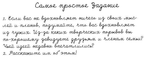 Вот мы и сделали полный круг – начав со смысла жизни. Мы уже пришли к тому, что он для каждого свой и у многих он в течение жизни меняется. И что любой смысл жизни можно опровергнуть – всякий мыслящий человек легко придет к тому, что на самом деле ничто никакого смысла не имеет вообще. Однако при более близком рассмотрении становится видно, что не так уж важно, нужно все это кому‑то или нет. В нашей жизни есть что‑то, что заставляет нас встать, когда мы проснулись, и хотеть что‑то продолжать. Когда мы лежим, отвернувшись к стене, плохо не только нам, но и нашим близким. Когда же нам хочется жить и что‑то нас воодушевляет, мы счастливы и радуем тех, кто нас любит. То, что нас воодушевляет, и есть вдохновение. Где же найти его? Вдохновение – это не то, что нисходит откуда‑то свыше. Это не существо с крылышками, которое прилетает и улетает по своему желанию. Вдохновение – это состояние. Такое же, как эйфория, радость, печаль или тоска. Каждый знает вкус вдохновения, каждый хоть раз испытывал это чувство. И все прекрасно вспомнят, что именно их вдохновляет (или в свое время вдохновляло). Но где его взять, если оно ушло? Интересным образом вдохновение может переходить от одних людей к другим, оно заразительно! Общеизвестно, что если у человека горят глаза и он весь светится, люди, с которыми он взаимодействует, тоже начинают светиться. Именно поэтому мотиваторы – никакие не шарлатаны, они просто совершенно искренне делятся со слушателями своей эйфорией и боевым духом, и люди невольно заряжаются их эмоциями. Послушав час такого окрыленного человека, они выходят со встречи с ним в таком же эйфорическом настроении. Получается, что самый простой рецепт для получения вдохновения – общаться с вдохновленными людьми. Неважно, чем они горят – приготовлением еды или постройкой дирижабля. И неважно, чем именно хотите загореться вы. Передается состояние, и оно для всех занятий одинаковое. Также вдохновение передается через то, что с вдохновением сделано. Поэтому можно вдохновиться, рассматривая, слушая или читая результаты вдохновенного труда. Поэтому помогает перелистывание чужих блогов с красивыми картинками, посещение выставок или магазинов, с любовью наполненных красивыми товарами. И, кстати, многих ругают, мол, вдохновляют тебя совсем ненужные вещи, тратишь на них почем зря кучу сил, денег и времени. На такие замечания я всегда отвечаю, что занятие, дающее кому‑то радость бытия, уже тем самым настолько важно, что больше от него ничего и не требуется. И опять же – не забывайте про философский момент: если от чего‑то перестать ждать пользы, оно может вдруг неожиданно эту пользу принести, да еще как! На самом деле вещи, сделанные в творческом порыве, не могут быть ненужными. Любая мелочь, сделанная с огнем, несет этот огонь в себе. И кто‑то желающий черпать вдохновение изо всех возможных источников почувствует это и захочет эту вещь иметь. Это работает с чем угодно, от булочки до носка, поэтому получается, что вещи, сделанные с душой, все кому‑то пригодятся! На самом деле тут мы подошли к одному из самых интересных пунктов в отношении вдохновения. Меня часто спрашивают: «Вот к тебе каждый день сотни людей обращаются. И все хотят не просто поговорить и получить ответы на какие‑то вопросы – они, понятное дело, приходят за вдохновением. Им хочется услышать 