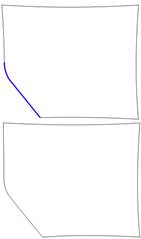 Затем дорисовываем кривую (отмечено синим). Эту кривую условно можно разделить на две линии: на участок прямой и на участок кривой линии, формирующей начало изгиба угла. Естественно, эту кривую нужно будет объединить в один объект с общим каркасом листа.